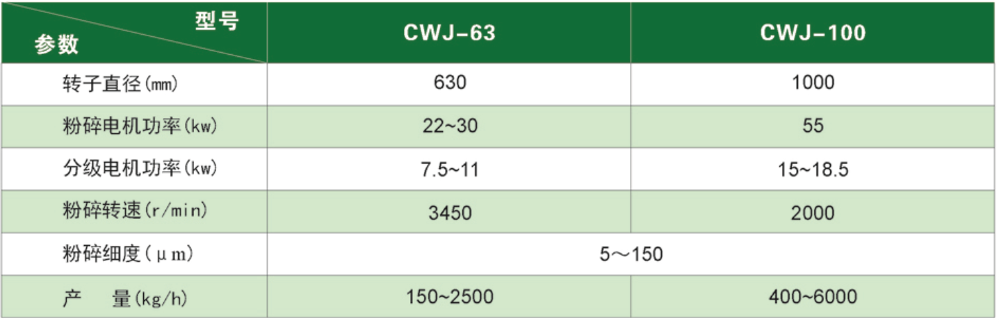 ① 本机为立轴式超微粉碎机,上部为卧式涡流高精度分级机,能同时完成物料的超细粉碎和微粉分级两道工序;