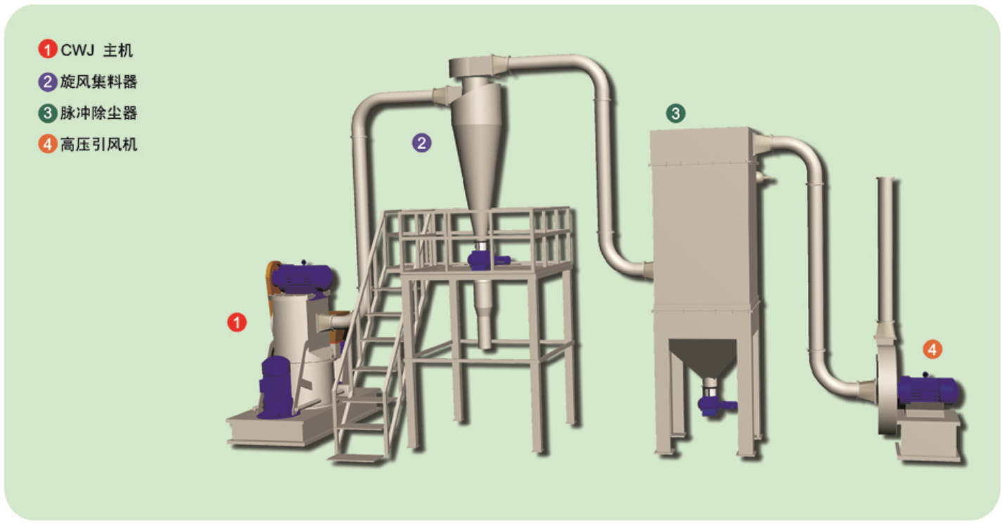 ② 通过调节高精度分级叶轮的转速和吸风量的大小,不停机即可调节成品的粒度;